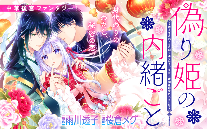 『偽り姫の内緒ごと ~後宮で身代わりの妃を演じたら、皇帝と護衛に寵愛されました~』(著:桜倉メグ/ 原作:雨川透子)