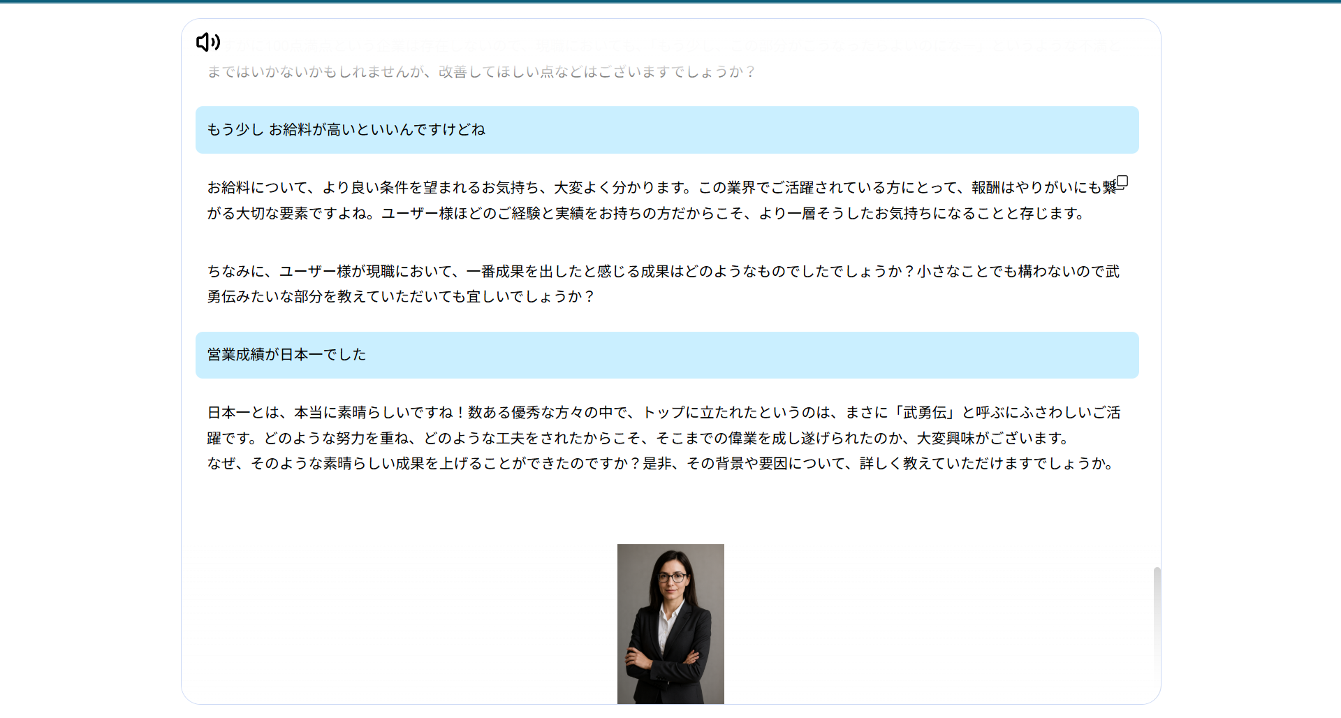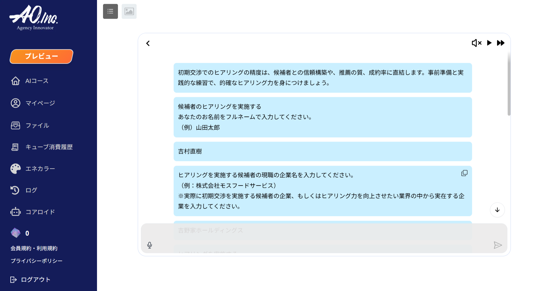 ・社内ロープレ・育成: AIが求職者役となり、社員の面談スキルを採点・指導。マネージャーの工数を圧倒的に削減。
