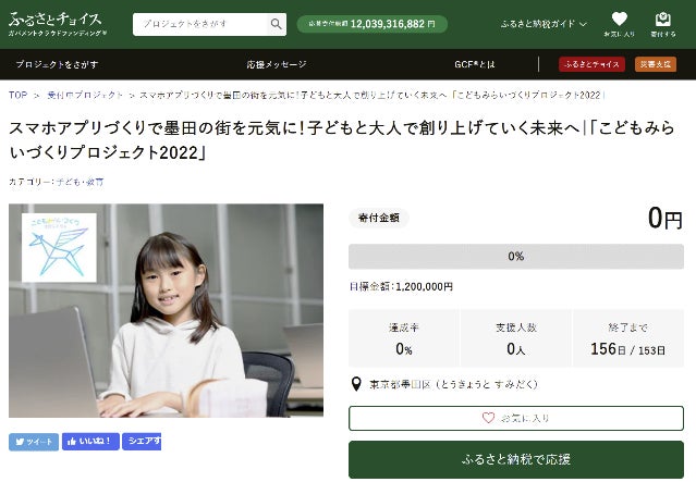 - 「スマホアプリづくりで墨田の街を元気に!子どもと大人で創り上げていく未来へ 〜こどもみらいづくりプロジェクト2022〜」は、プログラミング言語を使わないアプリ開発講座をこども達に提供するために使用します。