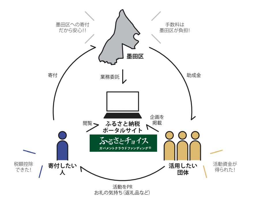 すみだの街を元気にするプロジェクトを募集し、採択された団体にGCF®の機会を提供。プロジェクトを指定して集まった寄付金を全て助成金として団体に交付する制度。