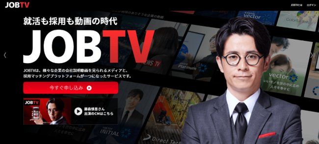JOB TVは、就職/採用活動における、「(自身/自社の)魅力を伝えづらい」「(就職/採用活動に)時間がかかる」といった就活生側・企業側双方の課題を解決する、これまでにない動画コンテンツを中心とした採用プラットフォームサービスです。企業・就活生は動画を通じ、魅力を分かりやすく伝えることで、スピーディなマッチングを実現します。