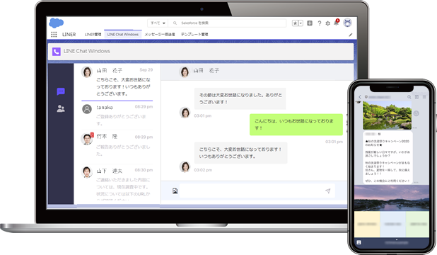 SalesforceとLINE、SalesforceとSMSをつなぎ、One to Oneコミュニケーションを実現し、顧客が欲しい情報を欲しいタイミングでお届けし、顧客とのエンゲージメントを高めることを可能にします。