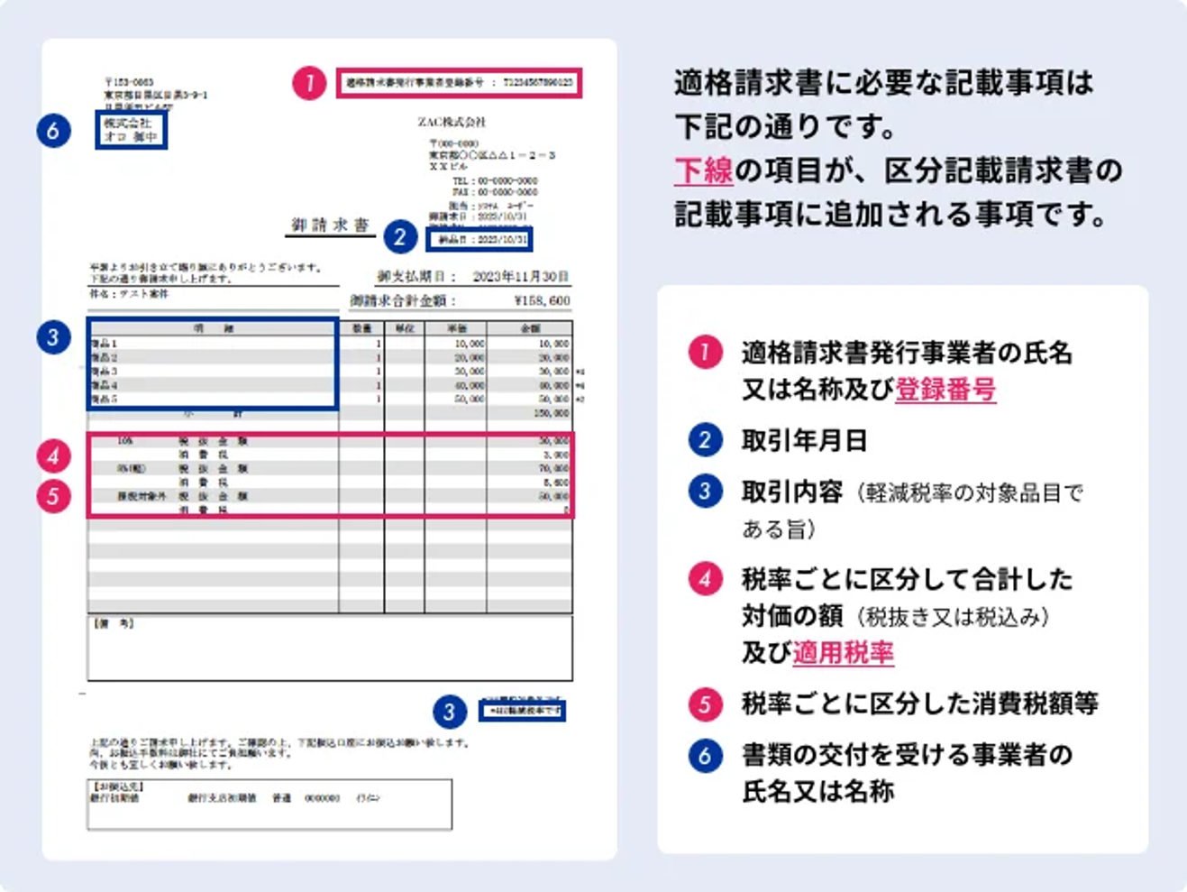 * 適格請求書:売り手が買い手に対して、正確な適用税率や消費税額などを伝えるために必要な記載がなされた請求書のことを指します。