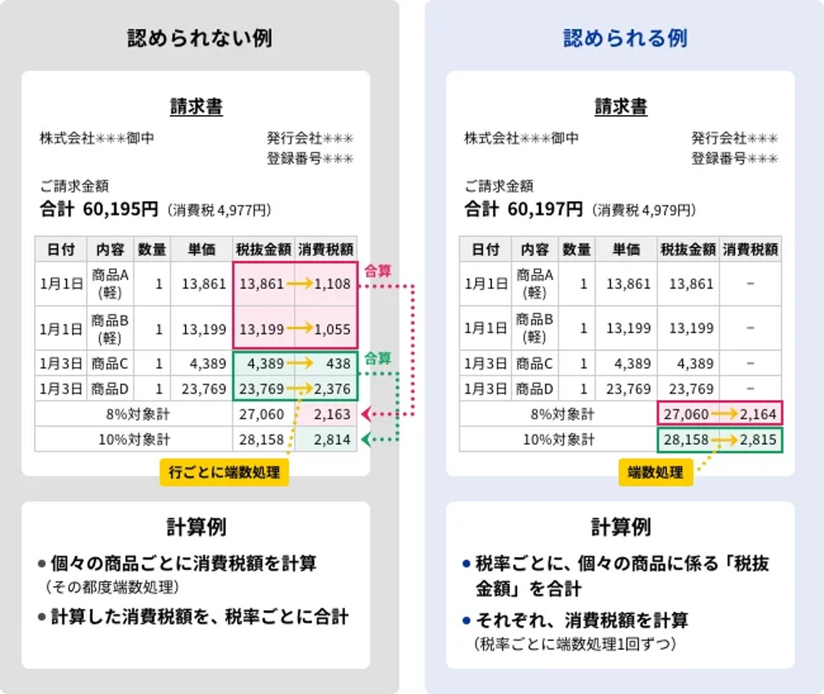 請求書の書式対応に加えて、消費税額の計算方法についても、適格請求書で認められている「一の適格請求書につき、税率ごとに1回の端数処理」を行う方法を採っています。