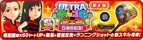 また、同日より、プラチナランク(PR)出現確率が4倍かつ、 限定アイテムが登場する「5周年記念ULTRAみんゴルフェス」の第4弾を開催いたします。