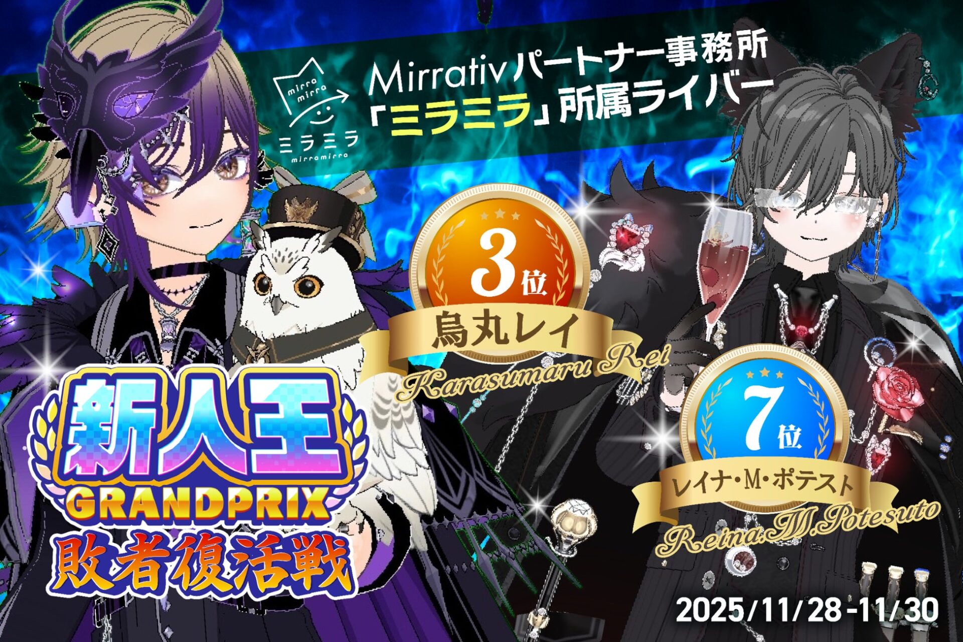 OTAGROUP株式会社(代表取締役:下西 竜二)は、スマホ画面共有型ゲーム配信プラットフォーム「Mirrativ」パートナー事務所「ミラミラ」の所属ライバーが2025年11月28日から11月30日に開催されたMirrativ内のイベント「新人王ランキングGRANDPRIX 敗者復活戦」にて参加された配信者の中でランキングTOP10の内2名が入賞したことをお知らせいたします。