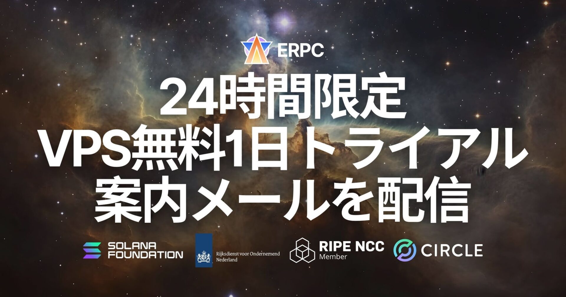ELSOUL LABO B.V.(本社:オランダ・アムステルダム、代表取締役 CEO:川崎文武)および Validators DAO が運営する ERPC は、プラットフォーム刷新に伴う基盤更新を受け、ERPC 会員の皆様を対象として、24時間限定で VPS の無料1日トライアルを利用できる案内メールを配信しました。