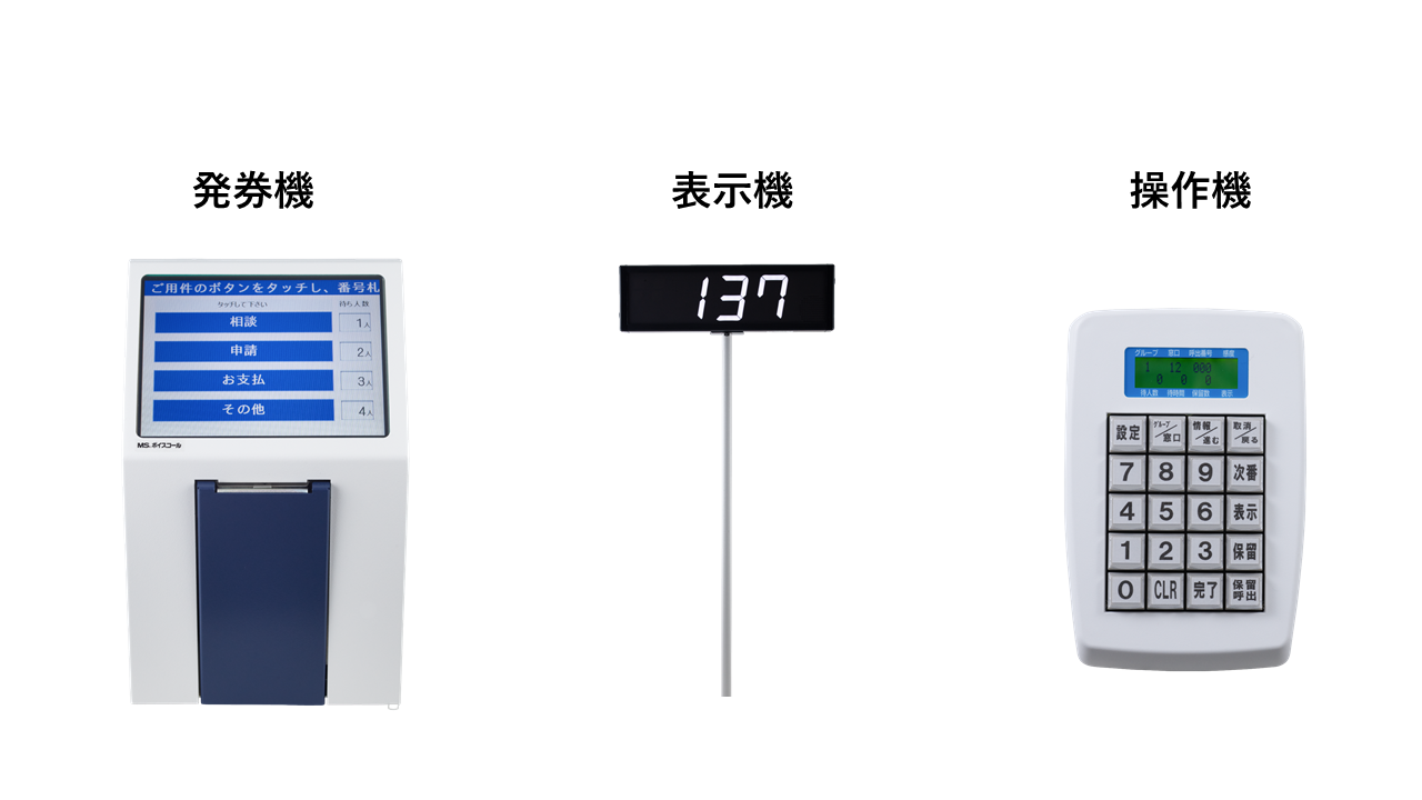 明光商会のMS ボイスコールは、「(順番に)発券する」「(受付順を)表示する」「(番号で)お呼びする」という流れで、プライバシーを守りながら窓口業務を効率化する窓口案内システムです。1987年に音声付受付順番表示システムとして発売以来35年にわたり、常に進化を続けてまいりました。当初は順番を整理するだけの役目として開発したMSボイスコールですが、昨今では順番を整理するだけではなく、顧客サービスの向上、データ集計による分析、個人情報の保護など多くの役割が求められております。