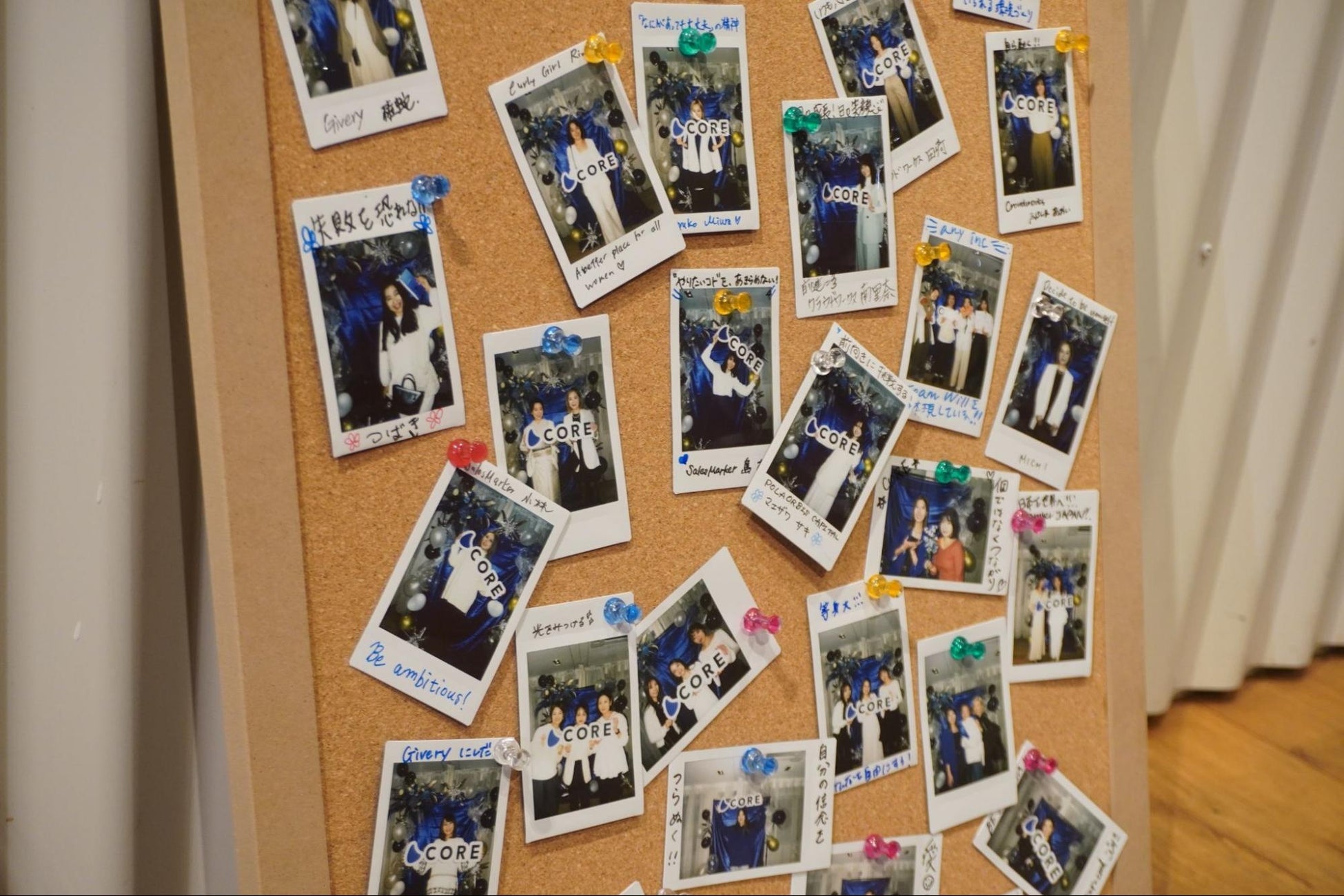 会場では「あなたの目指すリーダーシップの姿を教えてください。」という質問とともに、撮影コーナーとコルクボードを設置。チェキで1人1人を撮影した後に、自身の目指すリーダーシップ像を記載いただき、コルクボードに掲載しました。