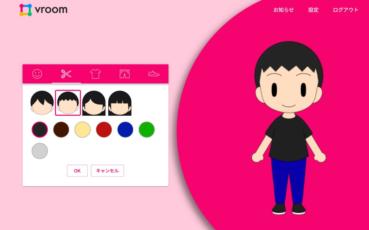 サービス内で数種類の髪型や服装などからアバターをカスタマイズをすることができます。ユーザーがアバターを用意する必要がなく、すぐにミーティングを開始することができます。