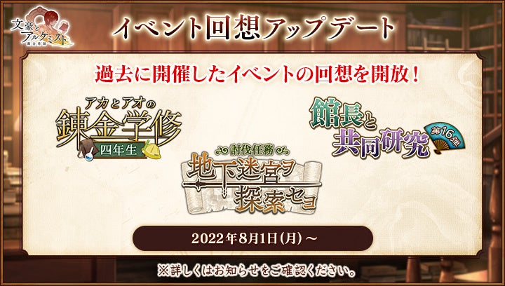 過去に開催したイベントの回想を開放いたしました。今回のアップデートでは、以下3つのイベント回想が図鑑よりいつでも確認できます。