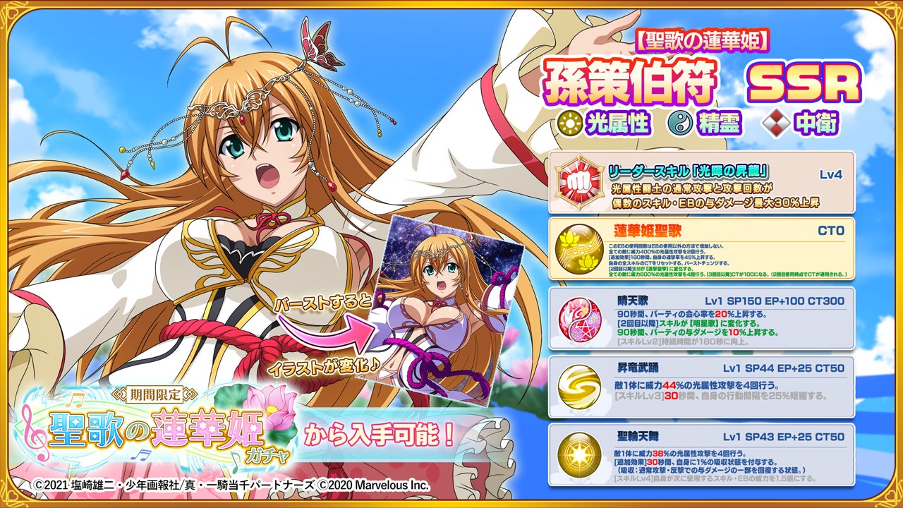 本日開始のバーストフェスで登場する「【聖歌の蓮華姫】孫策伯符」の姿を見ることができる紹介PVが公開中!
