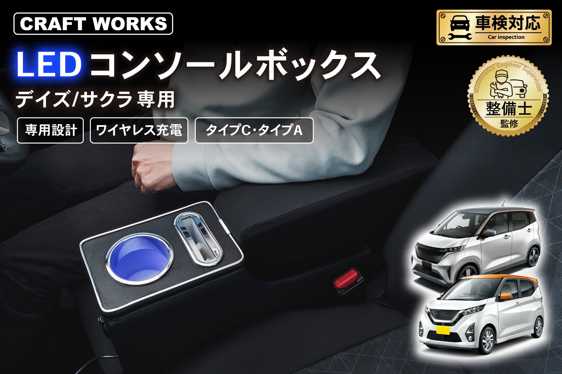デイズ/サクラ 専用 LEDコンソールボックス予約開始。車種専用設計で、純正のようなフィット感。抜群の収納力で、快適な車内空間を提供。スッキリ充電体験でデザイン性・使いやすさを実現!