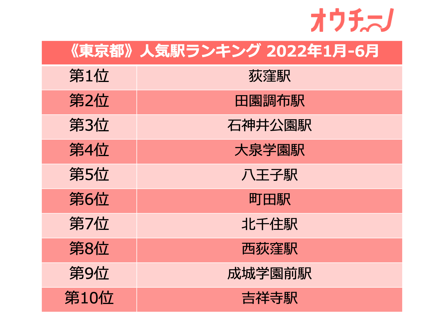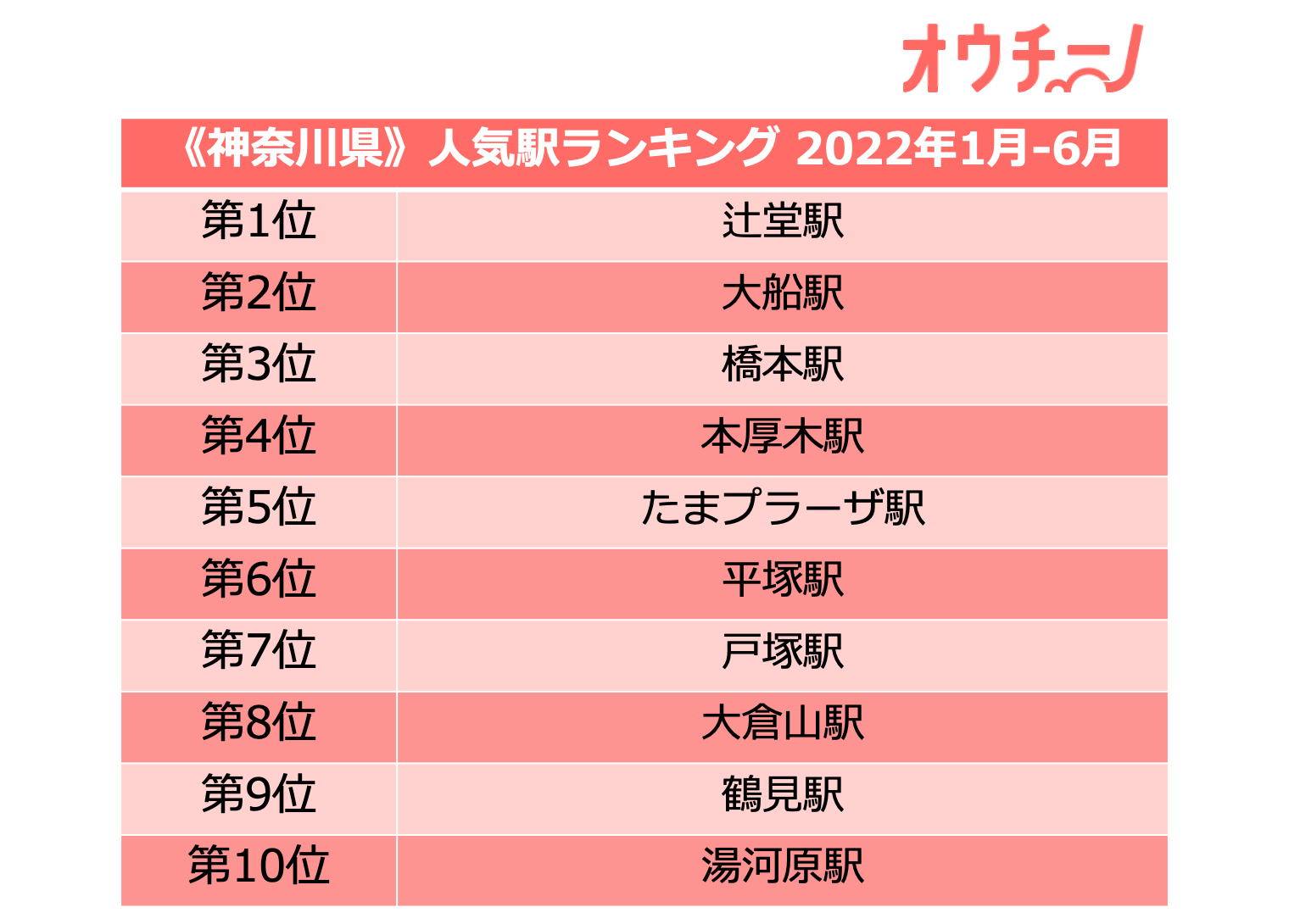コロナ禍3年目となる2022年1月-6月の期間における首都圏(東京都、神奈川県、千葉県、埼玉県)の人気駅ランキングは、第1位が「辻堂駅(神奈川県)」、第2位が「大船駅(神奈川県)」、第3位が「荻窪駅(東京都)」となりました。