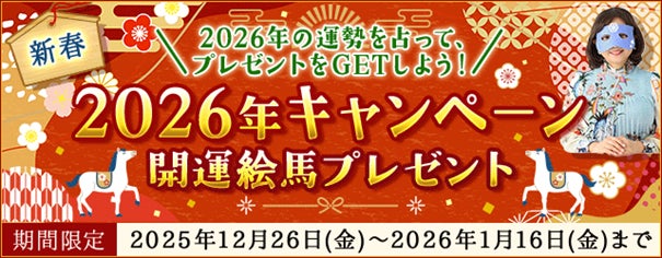 テレビや雑誌で話題殺到!人気占い師「水晶玉子」の公式占いサイトにおいて、「2026年開運絵馬プレゼントキャンペーン」を公開いたしました。