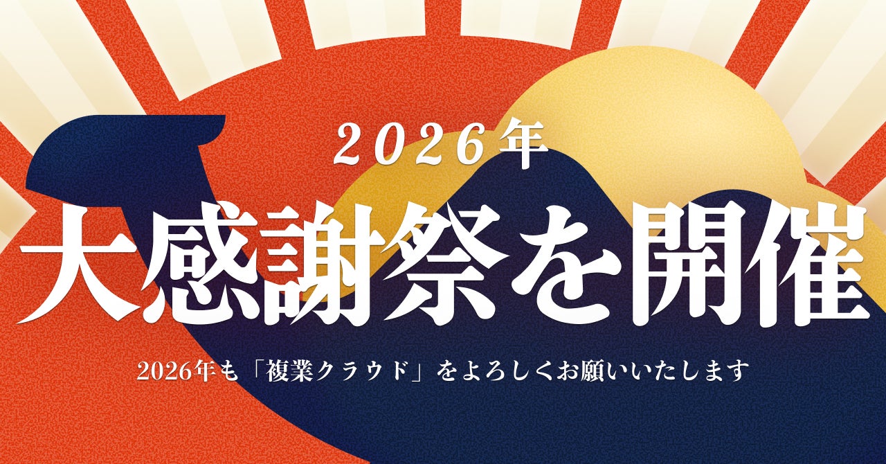 複業したい個人と企業・自治体を繋ぐ複業マッチングプラットフォーム「複業クラウド」を運営する株式会社Another works(本社:東京都港区、代表取締役:大林 尚朝)は、本日より2026年新春大感謝祭として、対象サービスのご契約で総額最大63万8,000円(税込)の割引が適用される特別キャンペーンを実施いたします。