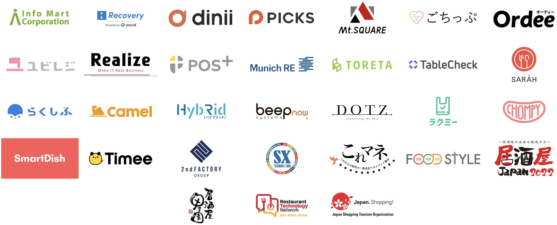 2022年7月時点で、賛助会員含む協力団体29社のご協力のもと、日本最大のレストランテックコミュニティを形成しています。