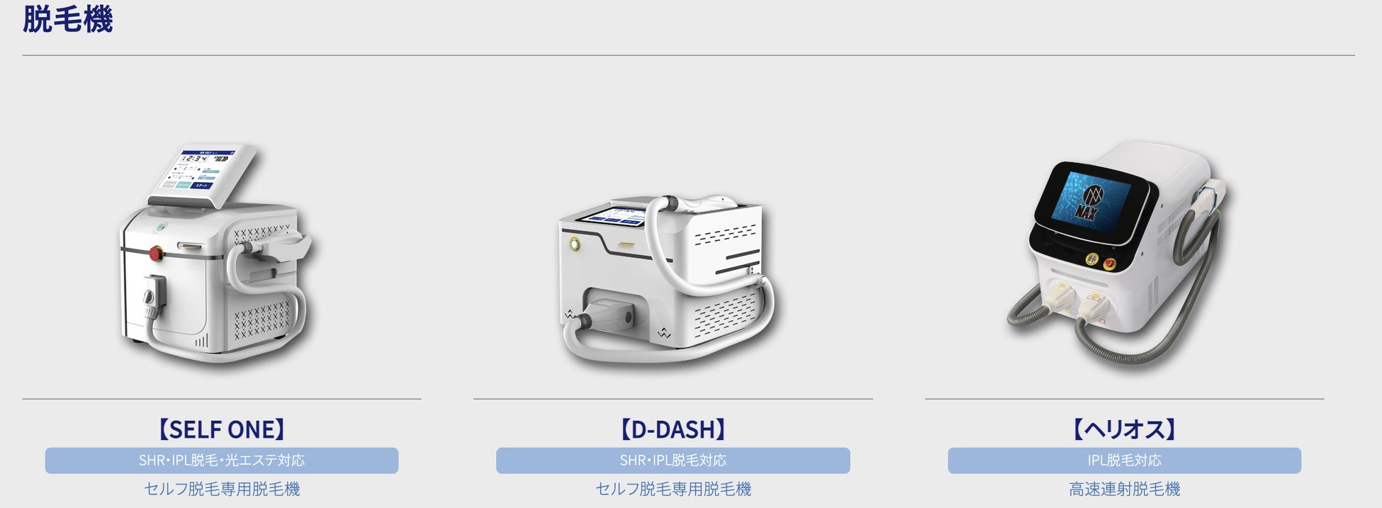 最新脱毛機D-DASHを筆頭に業務用脱毛機も豊富に取り揃えております。