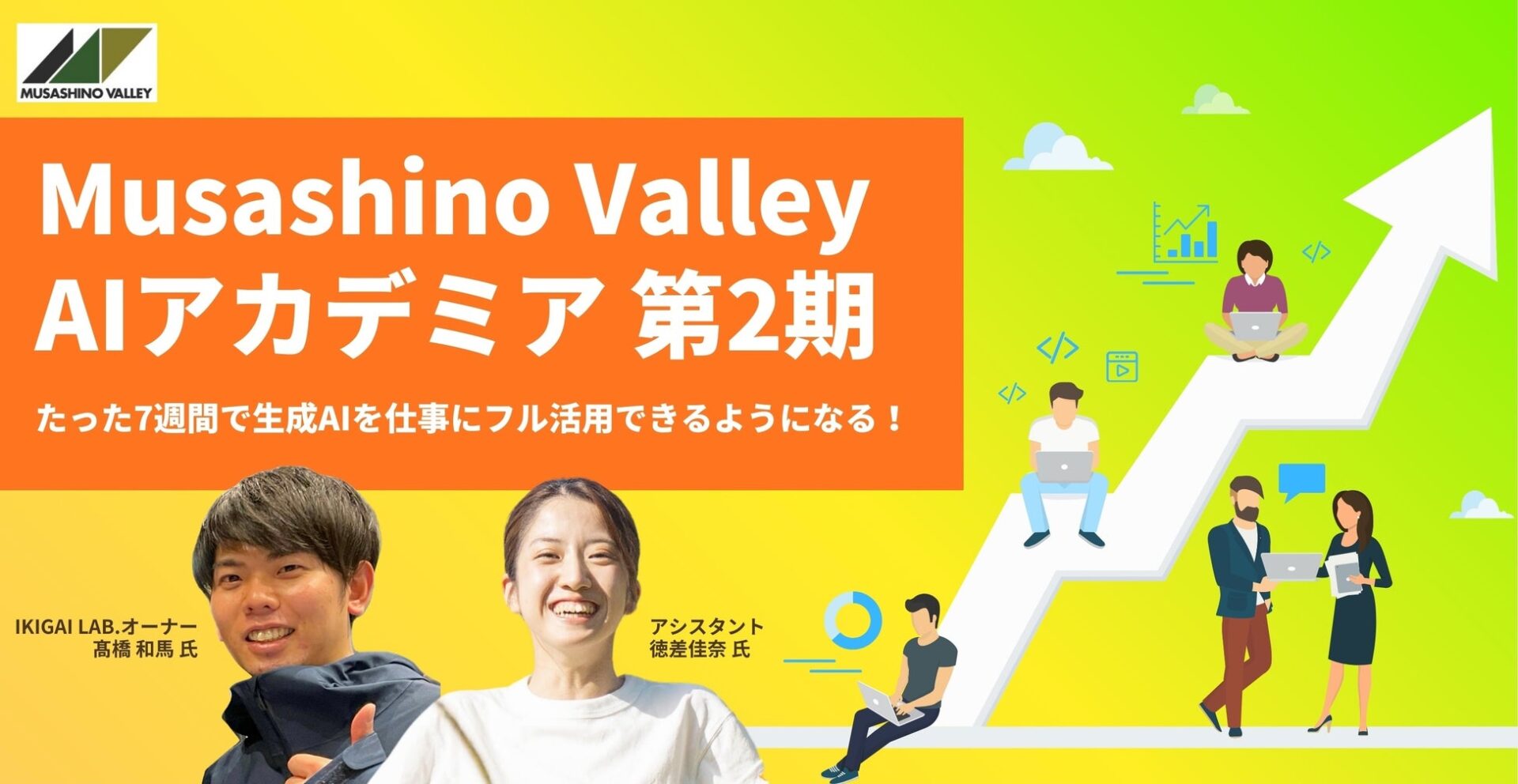 「次のステップ」に踏み出すすべての人を応援するスタートアップスタジオ「Musashino Valley」を運営する株式会社MVP(本社:東京都三鷹市、代表取締役MF 伊藤 羊一、以下MVP)は、IKIGAI lab.オーナー 髙橋 和馬氏を講師に迎え「Musashino Valley AIアカデミア 第2期」を2月5日(木)に開講します。