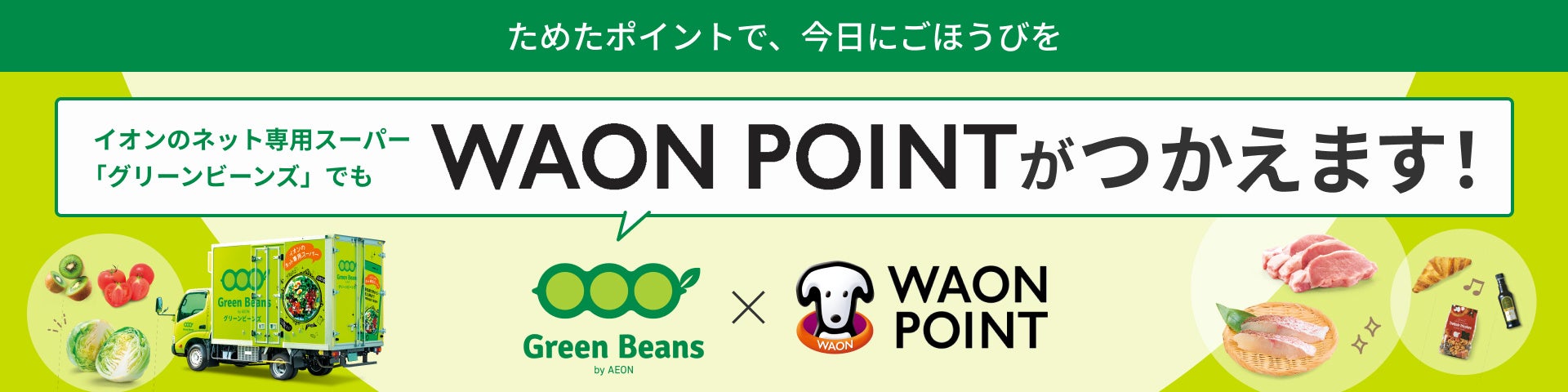 イオンネクスト株式会社(本社:千葉市美浜区、代表取締役社長:バラット・ルパーニ)が運営するイオンのネット専用スーパー「Green Beans(グリーンビーンズ)」は、1月7日(水)より、WAON POINTをお買い物のお支払いにご利用いただけるようになりました。
