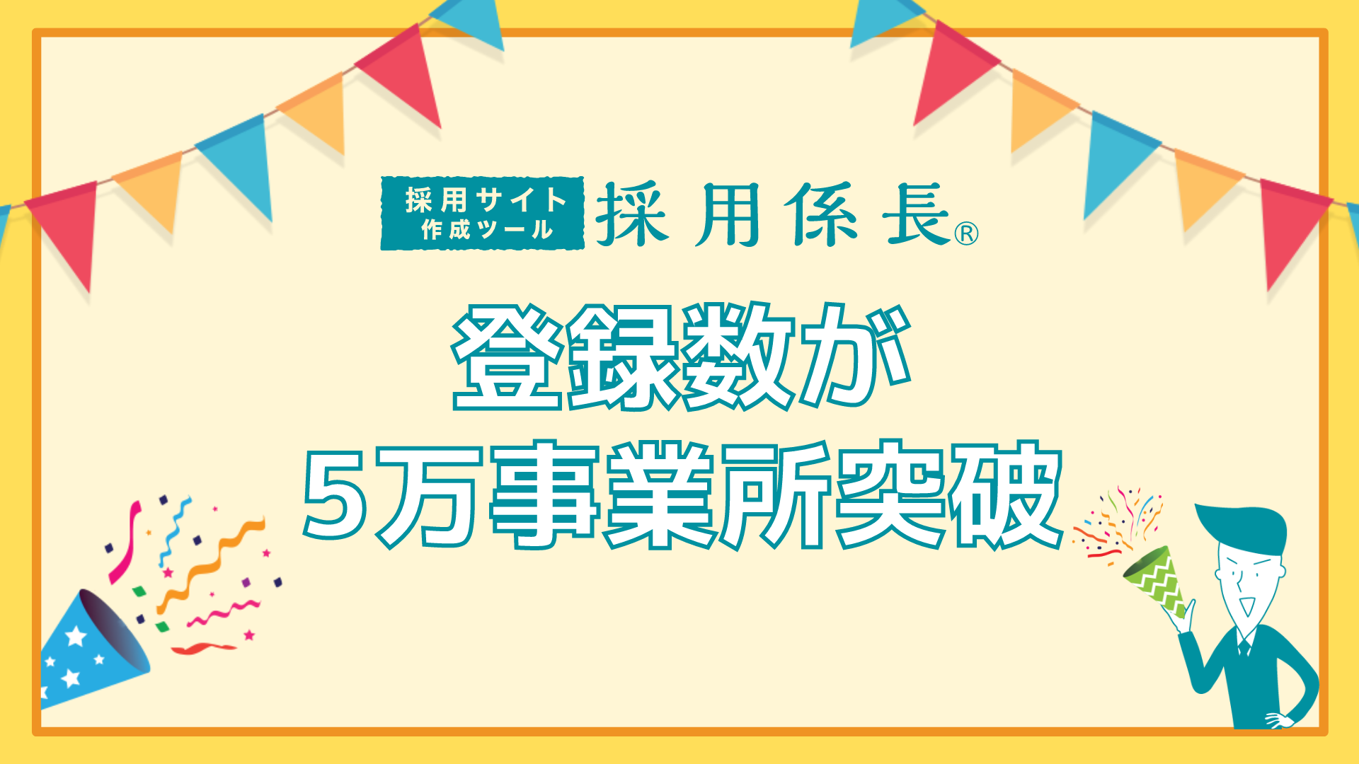 採用係長がリリースされてから5年、ユーザーの皆様や日々応援をいただいている関係者の皆様のおかげで採用係長は5万もの事業所様にご利用いただけるまで成長いたしました。これも皆様よりサービスに関して数多くのお声を頂戴し、ご支援いただいている賜物でございます。