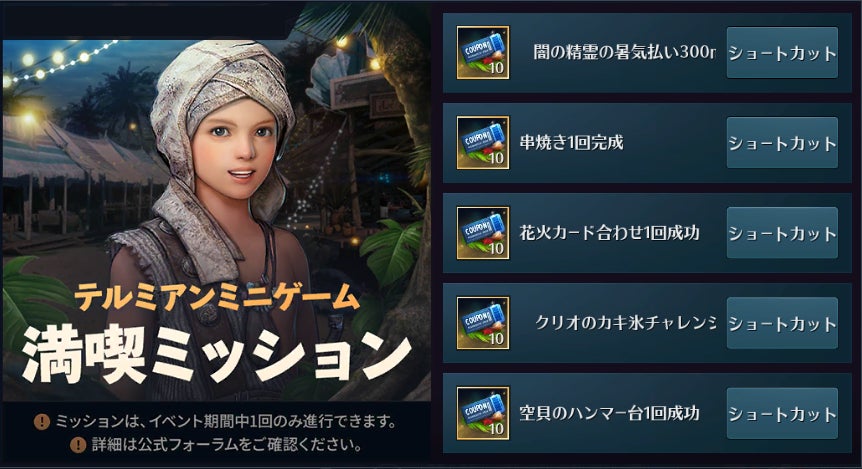 夏の雰囲気を存分に楽しめるテルミアンがオープンしました。テルミアンでは様々なイベントが開催され、今回は更に冒険に役立つアイテムが購入できる夜店もオープンします!