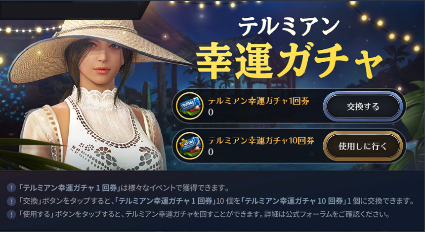 また、各種イベントではガチャをプレイする事ができる「テルミアン幸運ガチャ」のガチャ券を手に入れる事ができます。
