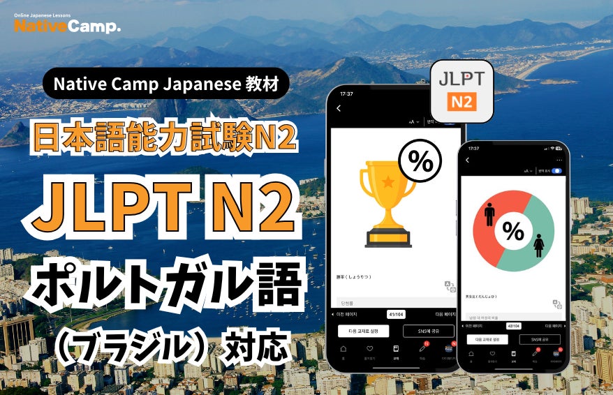 株式会社ネイティブキャンプ(本社:東京都渋谷区、代表取締役社長:谷川国洋)が提供するオンライン日本語会話サービス『Native Camp Japanese』では、このたび、教材「日本語能力試験N2」(JLPT N2)が、新たにポルトガル語(ブラジル)に対応いたしました。