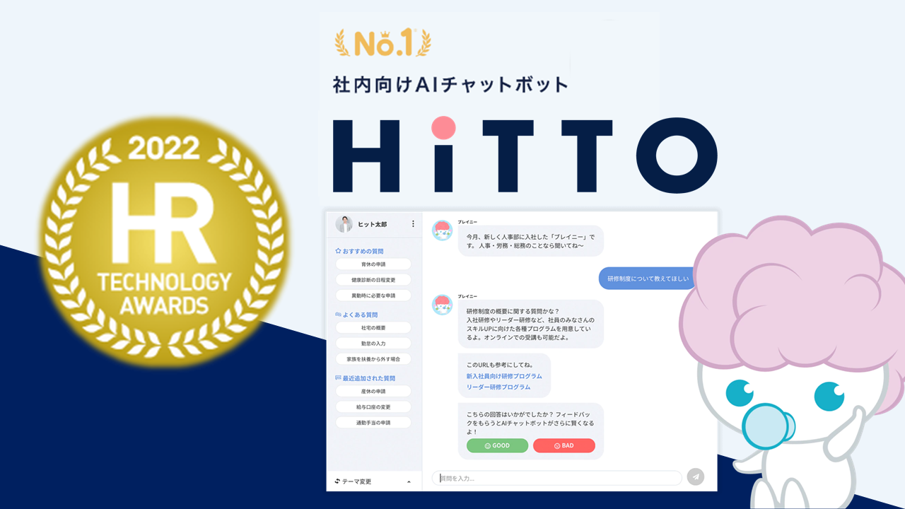 【 AIチャットボット市場シェアNo.1 社内向けAIチャットボット「HiTTO」 】