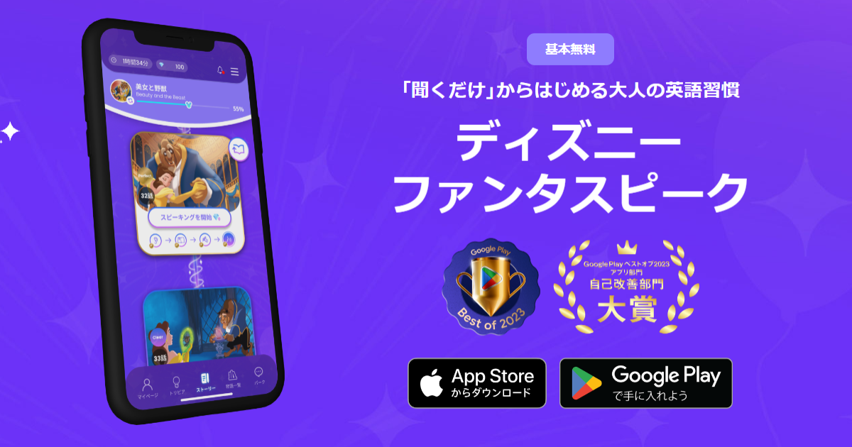 ※「ディズニー ファンタスピーク」(以下、ファンタスピーク)は、株式会社アルク開発・提供、ウォルト・ディズニー・ジャパン株式会社監修の英語・英会話アプリです。