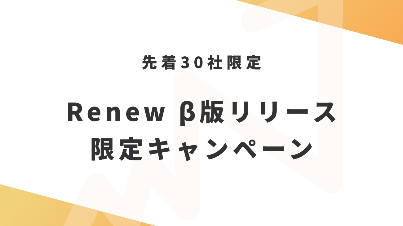 Renew β版リリースにあわせて、先着30社様限定のキャンペーンを実施しております。