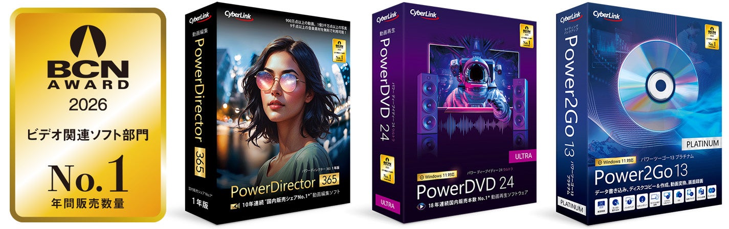 サイバーリンク株式会社(以下、サイバーリンク)は、2026 年 1 月 19 日(月)に株式会社 BCN より発表された BCN AWARD 2026 のビデオ関連ソフト部門において最優秀賞を受賞し、11 年連続受賞*を達成しました。BCN AWARD 2026におけるサイバーリンクのシェアは59.7%となりました。