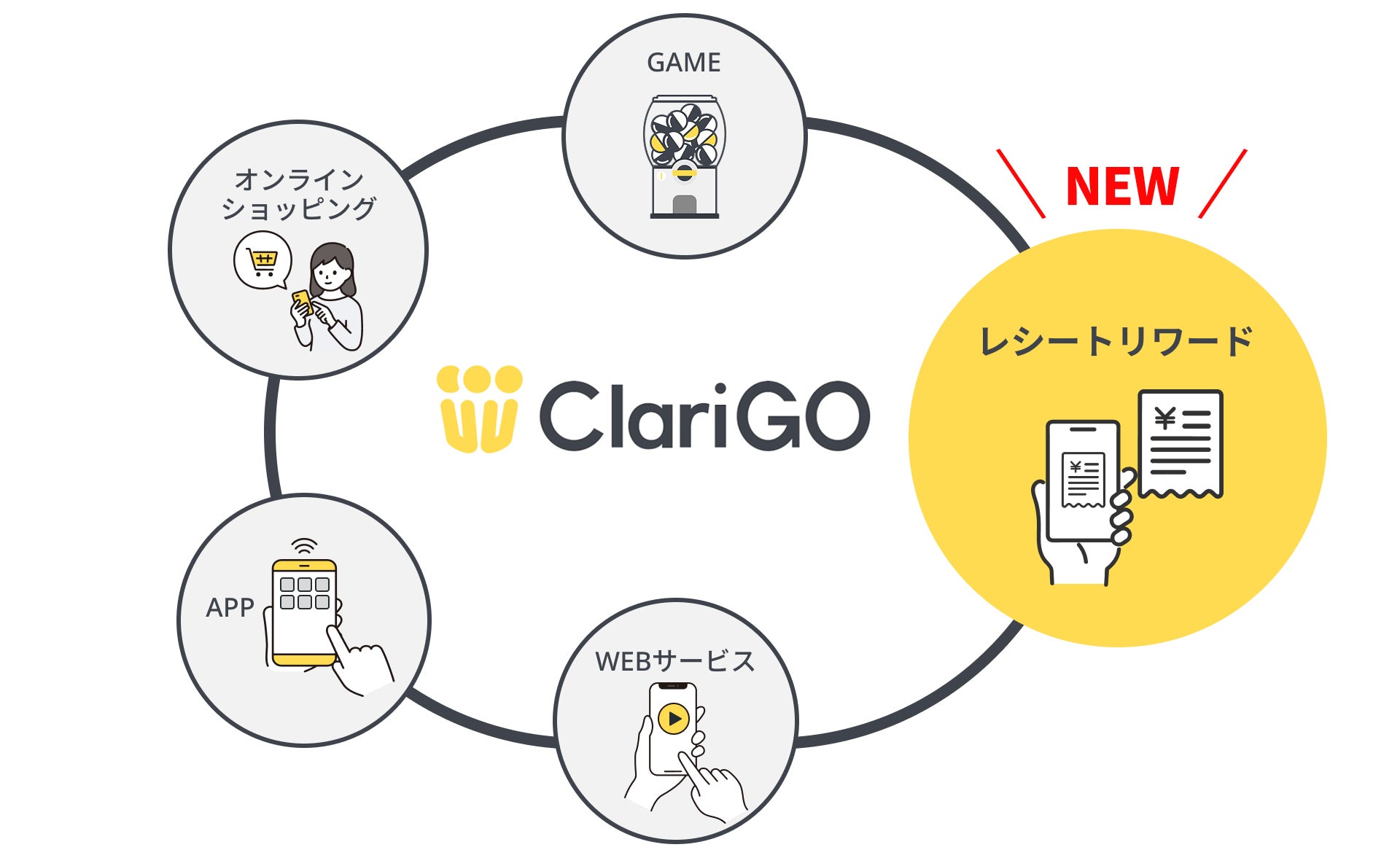 『レシ得』は、EDOCODEが提供するポイントモールプラットフォーム『ClariGO』の拡張サービスとして提供されています。『ClariGO』は、オンライン行動データに加え、レシートを通じたオフライン購買データを活用することで、より精度の高い分析や1to1コミュニケーションを可能にします。