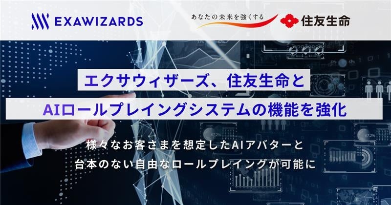株式会社エクサウィザーズ(東京都港区、代表取締役社長CEO:春田 真、以下エクサウィザーズ)は、住友生命保険相互会社(取締役 代表執行役社長 高田 幸徳、以下住友生命)と共同で、様々なお客さまを想定したAIアバターと、台本のない自由なロールプレイングが可能になる等の機能強化を実施し、2025年12月23日より運用開始*1しました。両社は、AIを活用した営業職員体制の進化プロジェクト*2として、お客さまに提供する価値の向上、業務運営の高度化、営業職員の活動・教育・働きがいの向上等様々な取組みを進めてきました。