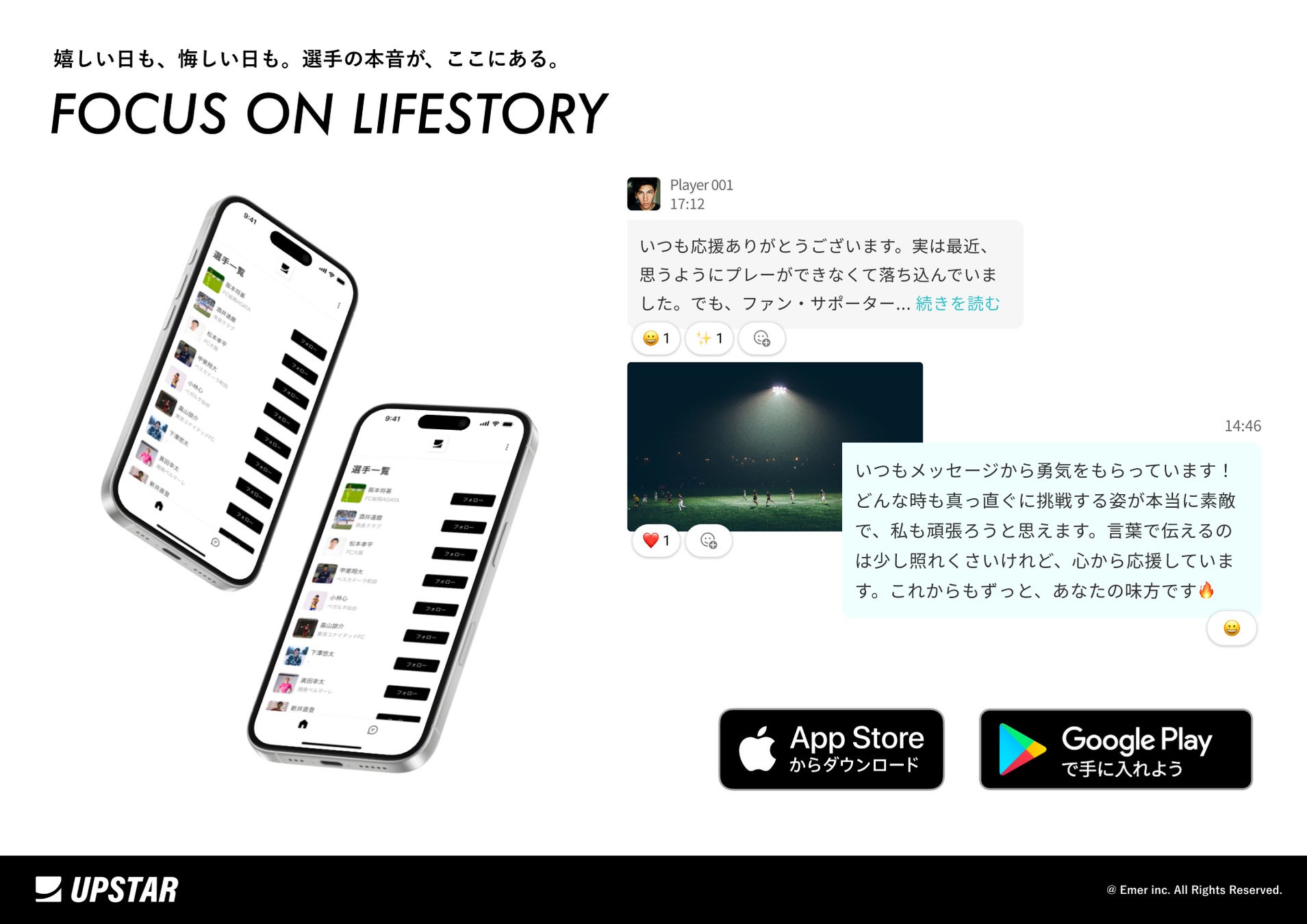 選手が結果だけで評価される存在ではなく、そこに至るまでの葛藤や努力、日常の積み重ねにも自然と共感が集まること。その想いに応えるように、ファン・サポーターの皆様の応援が選手の背中を押す力になっていくこと。そうした温かい応援の循環が、これからもアビスパ福岡様の中で広がっていくよう、UPSTARとしてできることに丁寧に向き合ってまいります。