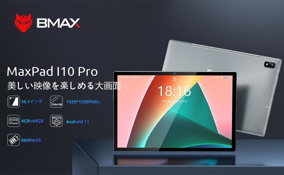 このBMAX I10Pro タブレットはUNISOC T310セッサを搭載しています。TSMCの12nmプロセスルールを利用して製造されUNISOC T310は、高性能な「A75(2.0Ghz)」コアと三つの高効率な「A55」コアを搭載し、AnTuTu実行ポイントも150,000を超えます。これにより、高いパフォーマンスと高い電力効率を両立させています。さらに、6600mAhの大容量バッテリーを搭載し、最大6時間の動画を再生することができます。