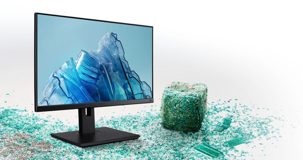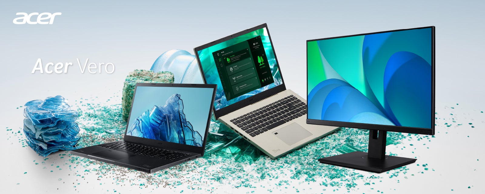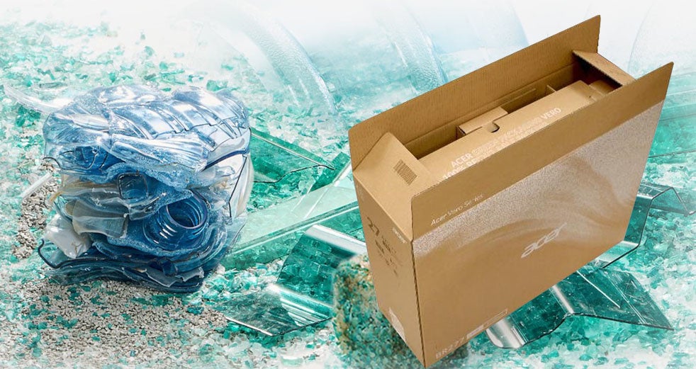Acerはプロダクトデザインから、開発、生産、エネルギー、ロジスティクス、パッケージデザイン、製品のリサイクルまで、製品生産のあらゆる過程で地球環境に考慮した取り組みを継続的に実施しています。近年、地球温暖化による気候変動や海洋汚染など、環境問題がより一層深刻化するなかで、お客様にお届けする製品も地球環境に配慮した製品を、というコンセプトからVeroシリーズの構想が2015年にスタート。本製品群は地球環境に考慮し、製品本体に再生プラスチックのPCR(ポストコンシューマーリサイクル)プラスチックを使用。Aspire Veroの2機種はキーボードキャップに50%、ボディ(トップ・ボトム・スクリーンベゼル・操作面)に30%のPCRプラスチックを、モニター BR7の2機種には65%のPCRプラスチックを採用しました。