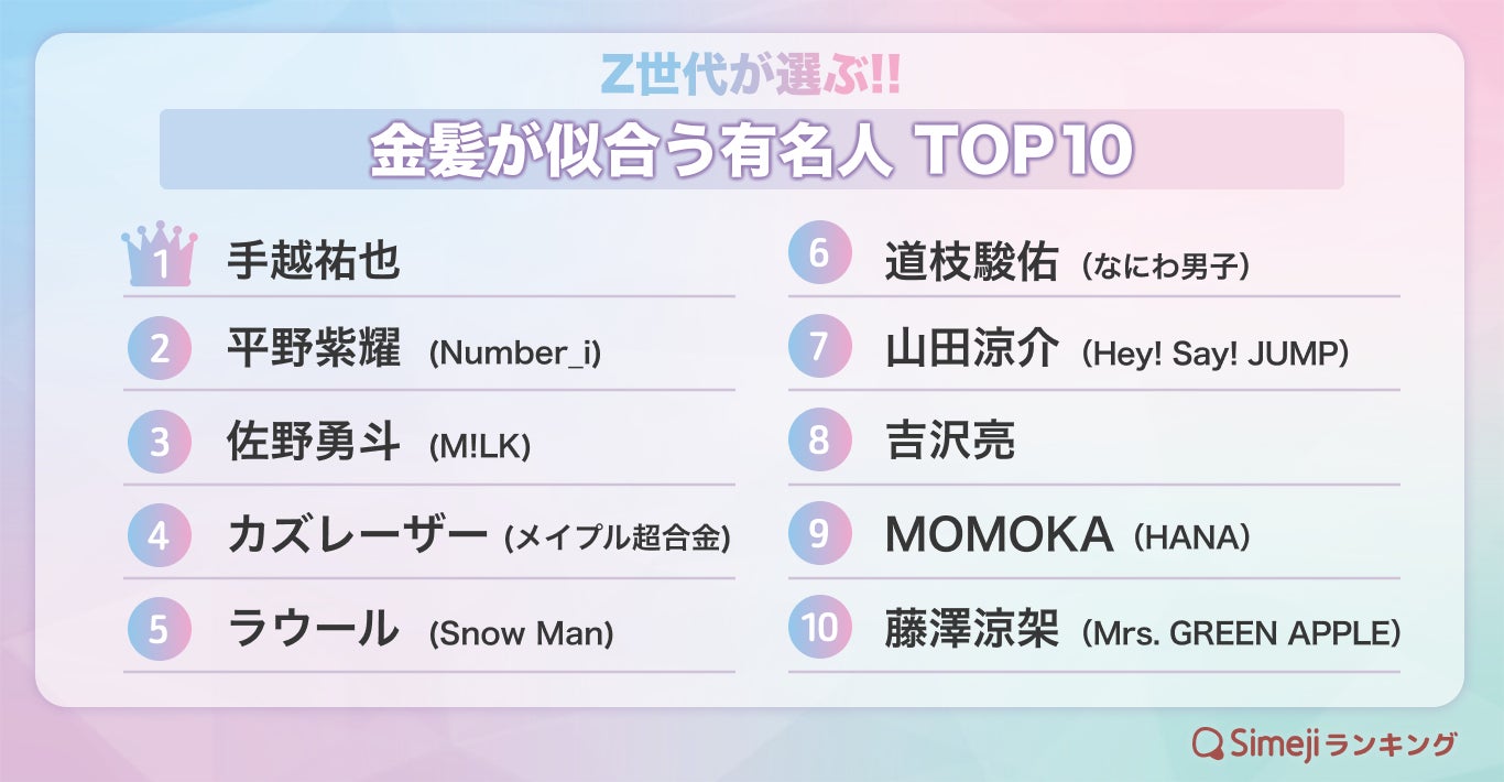 今回のテーマは、1月24日の「ゴールドラッシュの日」にちなんだZ世代が選ぶ!!「金髪が似合う有名人TOP10」