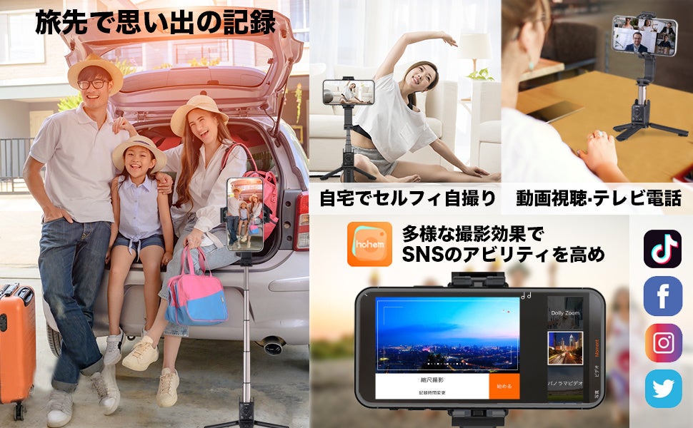 Hohem Q 自撮り棒は 三脚と一脚を自由に変換出来、一台多役、旅先の自撮りも大人数の集合写真も、テレビ視聴やビデオ通話の時も、気楽にお使いいただける自撮り棒です。