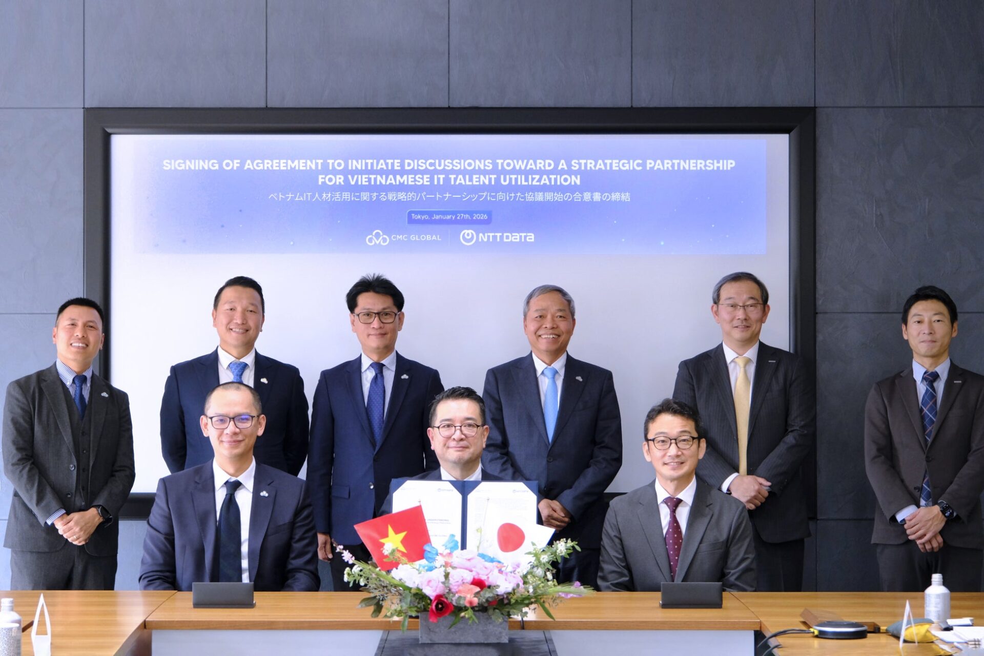 NTTデータとCMC Globalは、NTTデータベトナムを軸としたベトナムにおける対日オフショア開発の強化に向け、基本合意書を2026年1月に締結しました。開発リソースの確保だけでなく、営業活動の促進、研究開発(R&D)、サービス拡充、人材育成などをテーマとして、戦略的パートナーシップを含む協業の検討を開始します。
