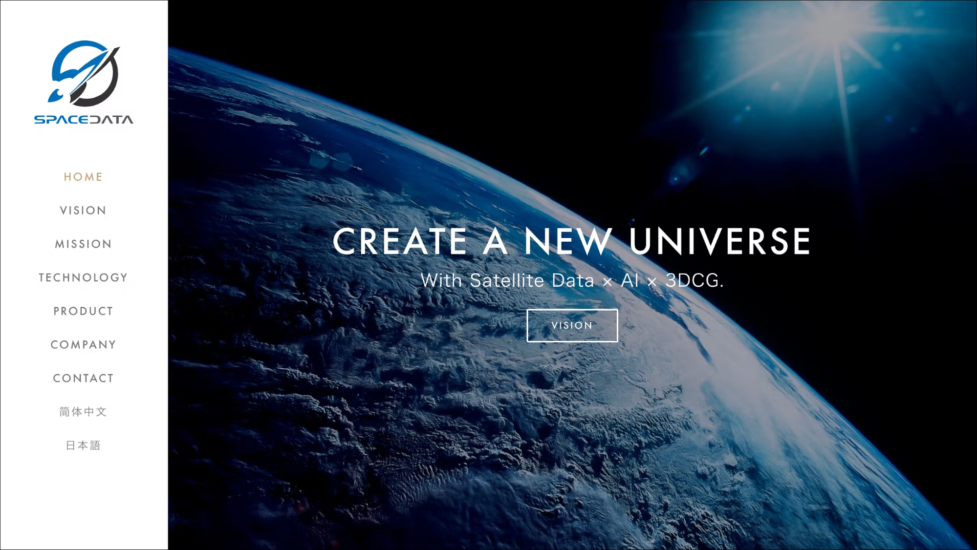 スペースデータでは、①衛星データ、②AI技術、③3DCG技術の三つの技術を軸に研究開発を行う宇宙関連スタートアップです。宇宙とは一般的には未知の物理的な空間だと考えられていますが、当社では宇宙とはテクノロジーを活用して「作り出す対象」であると捉えています。宇宙の本質は物質ではなく情報(データ)であるという仮説のもと、「テクノロジーで新しい宇宙を作る」ことをビジョンに掲げています。