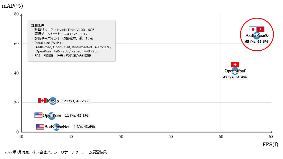 ●他の姿勢推定とのベンチマーク(2022年7月時点)