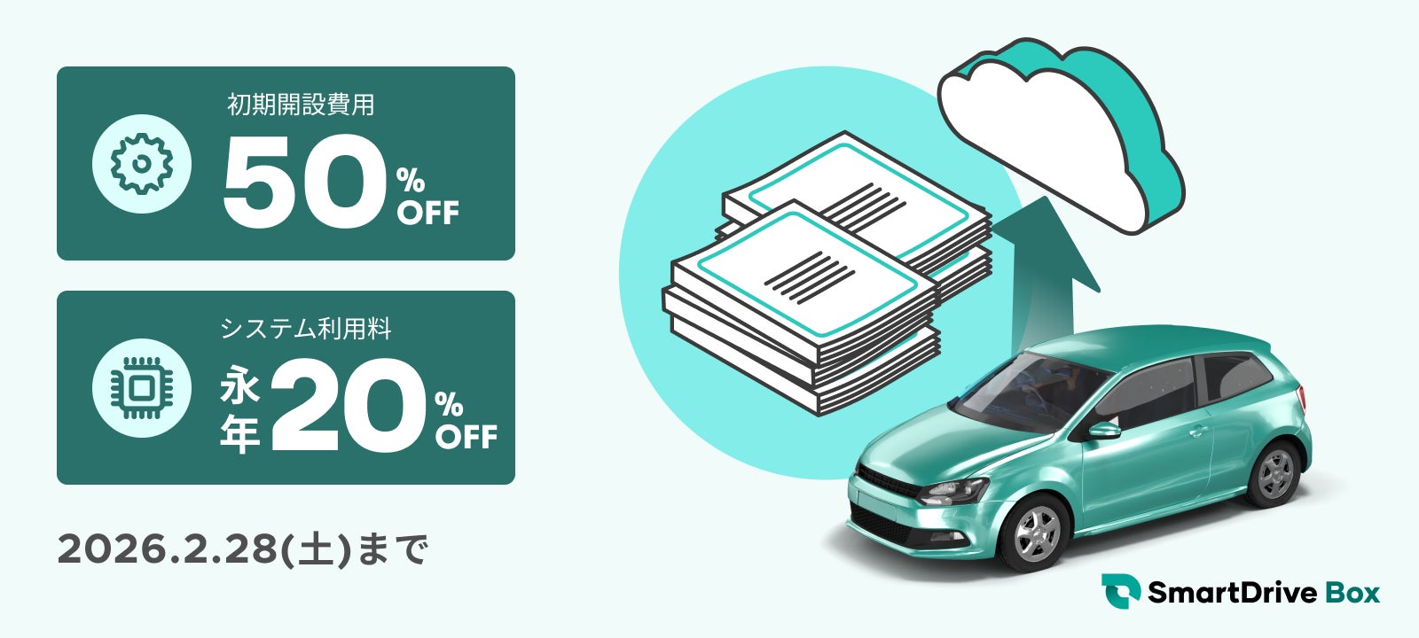車両に関する書類DXを促進するクラウドサービス「SmartDrive Box」をお得に利用開始いただける『[期間限定] 書類管理DXサポートキャンペーン』のご案内