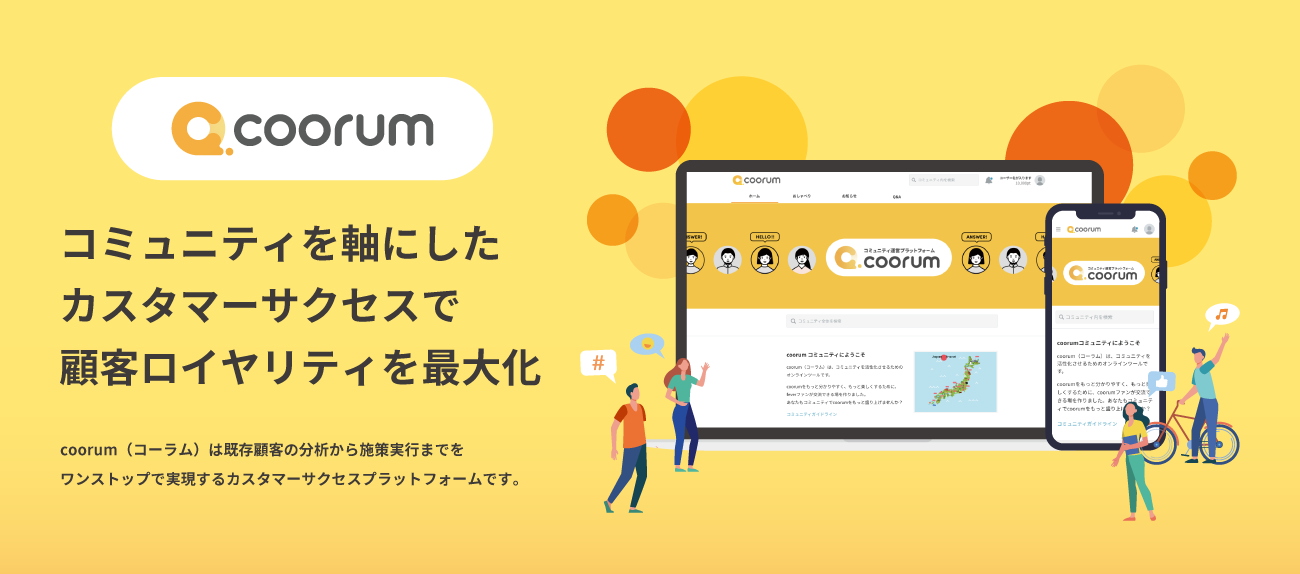 「coorum(コーラム)」は、顧客ロイヤリティ向上を目的とし、既存顧客の分析から施策実行までをワンストップで実現するカスタマーサクセスプラットフォームです。「企業と顧客がつながる場」の提供によって多くのファンを生み出し、LTVの最大化を可能にします。