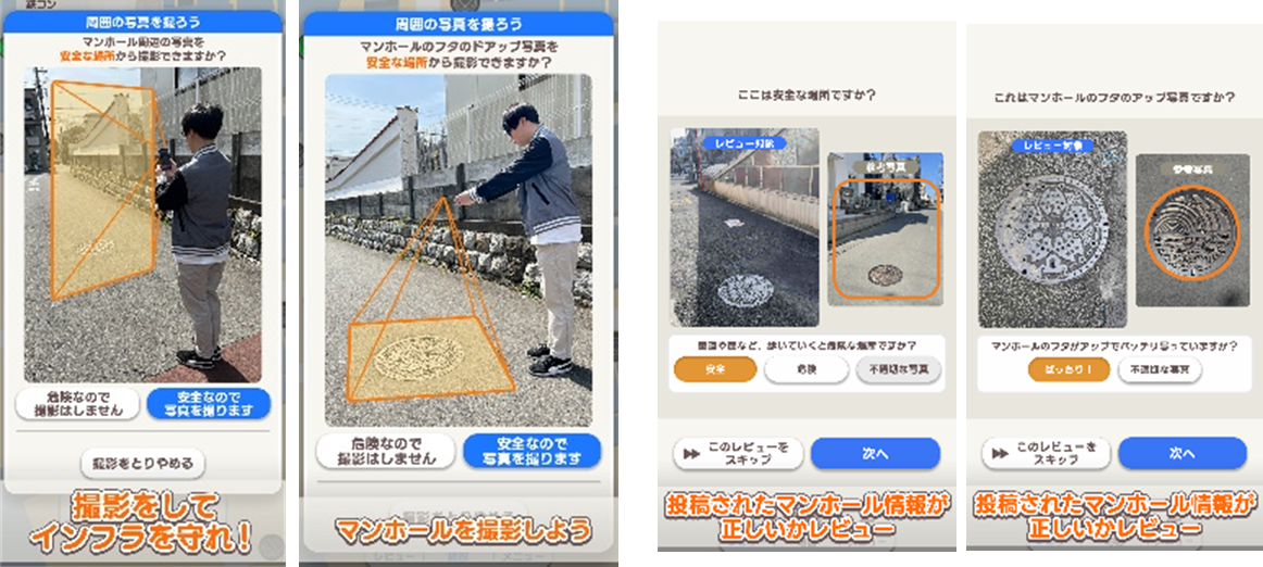 3)「鉄とコンクリートの守り人」アプリを使って、マンホールを撮影・投稿。