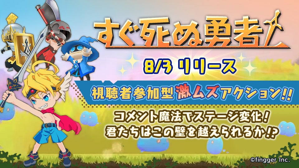 2022年8月3日(水)より、次世代ゲーム配信プラットフォームfinggerに、視聴者参加型の”激ムズ”アクションゲーム『すぐ死ぬ勇者』が登場いたします。