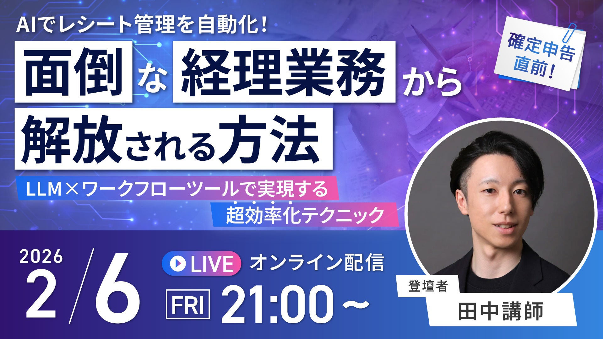 レシートの自動仕分け・管理の仕組み作りをAI業務効率化のプロ 田中講師に解説いただきます。