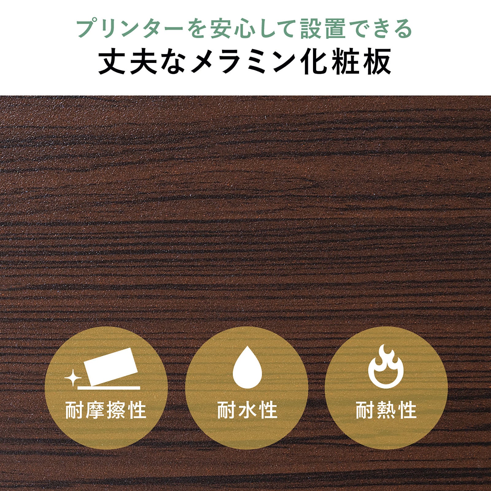 本製品は、リビングや書斎に合う落ち着いた木目調のプリンターワゴンです。