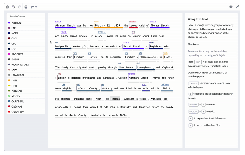 「Appen AI Data Annotation Platform」のテキストアノテーションツールセットは、自然言語理解とOCRプロジェクトに対応しています。主要なツールは以下の2つです。