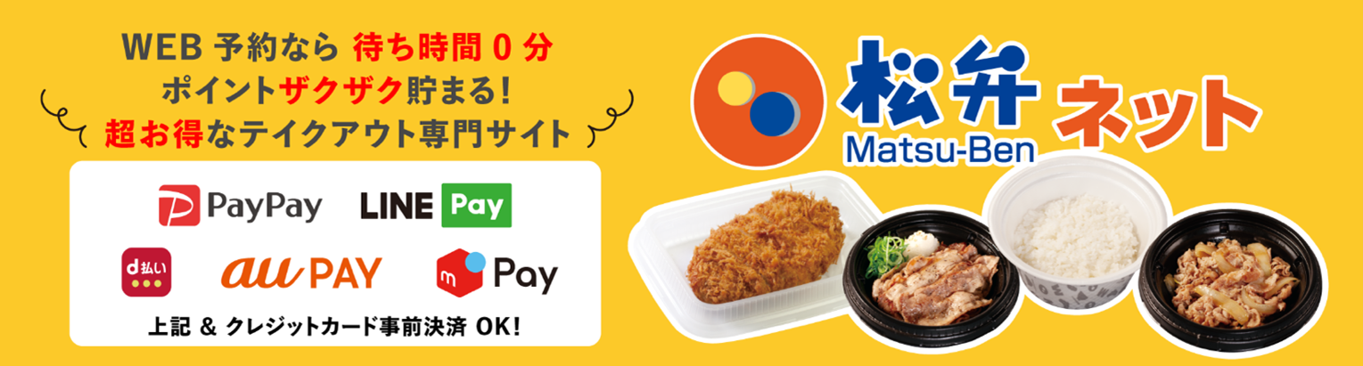 “待たずに買えるいつでもお得”な「松弁ネット」は、松屋公式アプリにて簡単にご注文いただけ、お待たせすることなくスムーズに松屋のお弁当をお受け取りいただけるサービスです。